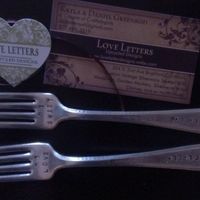 I went to a wonderful Etsy seller thanks to MS P (Sky) my date twin. They just cake today. My Set of Custom Cake Forks. Kayla is wonderful. She will put anything you want on as long as it fits. No...