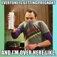 This meme says it all. I went to a friend's baby's 1st birthday party last weekend. Everyone was pregnant and/or had a kid with them except me, and since DH had to work... I was there alone. Texted DH...