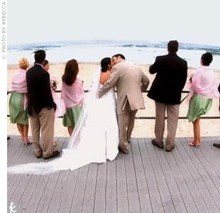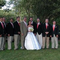 Fiance and i getting married outside at the end of June, 5 pm wedding. Her bridesmaids are wearing Navy dresses. To keep thing simple and afordable, we are having the groomsmen wear navy blazers and khakis, with a matching tie that i will provide...