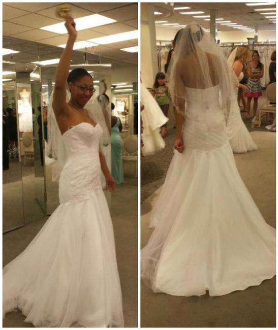 So I picked out a gown that I fell in love with!! It fits me perfectly which was GREAT because I was dreading having to pay for alterations. When I was trying on dresses, I had on 2 1/2 in. heels which I wore because my fiance and I are the same...