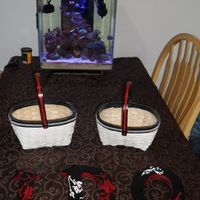 Ok, many of you probably already saw my other post with some DIYs, but here is our newest ones. We bought straw baskets from Michaels for about $5 and painted them. In this pic is also our DIY...
