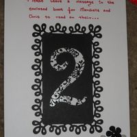 This is our alternative to our guest book. We plan on placing one on every table to serve as table numbers & a guest book. Our wedding theme is Damask , and our colors are red,black and white. My FH...