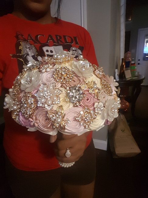 I ordered a brooch bouquet from Etsy and it finally came in! I opened the box and apparently they also gave me a boutonniere. I'm not quite sure how I feel about it. Do you all like the brooch...