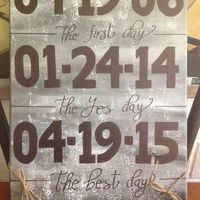 I spent all afternoon/evening working on a cute sign that has our first date/proposal/wedding date on it (it says the first day, the yes day, the best day. Woo Pinterest). I was really pleased at how...
