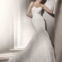 I found a pic of my Pronovias dress. I'm removing the bow and getting a " blingy "bridal sash. I need help choosing a veil.What do you think ? Bird Cage or long Cathedral? My wedding will be at the end of December inside a Mansion with Marble floors...