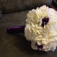 I'm finally (almost) done with the girls bouquets. Just need the pins for the handle and I ran out of ribbon. Now i'm wondering what color I should make my bouquet. I have more of the white hydrangea...