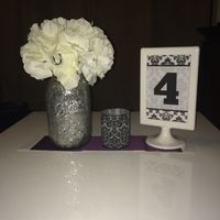 I finally got something done! I'm waiting for two jars to dry and I still have to go to Ikea to get the candle holders for the damask luminary in the middle but this is how our centerpieces will look....