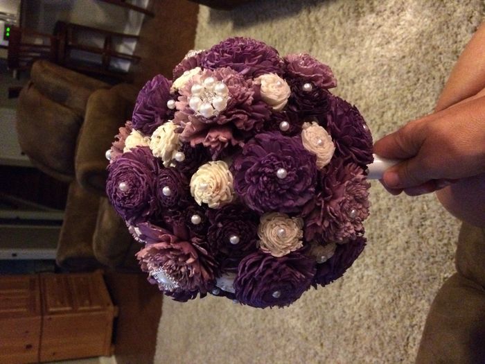 I finished up my bouquet but don't quite know how I feel about! I think I prefer real. Debating on using this or just going to the Farmers Market a couple of days before and DIY some real flowers....