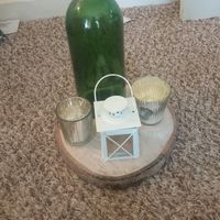 Here is a pic of part of my centerpieces. There will be clear votives added and flowers in the wine bottle. I plan to paint the wine bottles and need to know if I should do a rose gold or a blush...
