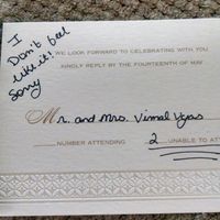 I am sorry, I know there have been a ton of threads recently about RSVPs, but I need to rant! FH came home from work today with the mail, our first RSVP card! Turns out it was from one of my...