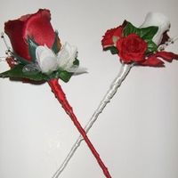 So here are a few of my boutonnieres that we did tonight!! Took us three hours to do the first one, but after that it was so bad! How did we do? 1.) My grooms!! 2.) My dads 3.) My sister - Maid of...
