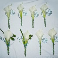 Finally got a chance to work on the boutonnieres to match the other bouquets I've made for the wedding. Also, we're having "Groom's Attendants" since my groom's best friends are girls (friend of mine...