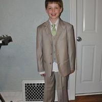 The suit we ordered online for my FH's son (9) came in. He looks so cute!!! It took me a while to find a TAN youth suit - but this one I found is a 5 piece w vest, shirt, and tie, but we swapped out...