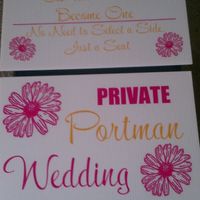 I have entrance & seating signs, & guest book sign ( I think it need something else?) Still need sign for favors & drinks.. & Possible either seating chart or Reserved signs for parents/family tables ...