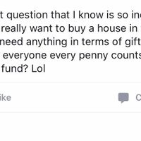 I am a member of a state wedding chat group on Facebook. Similar to WeddingWire discussion but localized. This was the WTF post today. The worst part is everyone commenting on the post is encouraging...