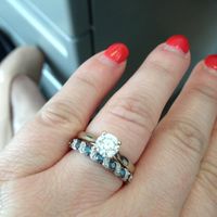 I originally wanted sapphires and diamonds, but then laid my eyes on blue diamonds and was sold. So to the internet! I love it so much, the color is perfect and it sits up against my solitaire just...