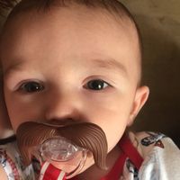 It's always a great morning waking up to this happy little man. He's totally taking the mustache binky to the wedding and having pictures with it lol