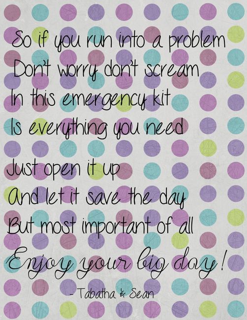 I am going to pack an emergency wedding kit. So i need all of your ladies help to name some stuff that would be important or a lifesaver on the big day!