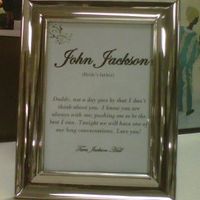 Here's a draft of my table numbers/names. We are having 10 tables and on each one, we will have a frame w/ one of our love ones name w/ a litte note. Tell me what you think??