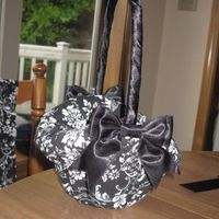 Here's mine, I finished our flower girl basket. The basket I bought was plain white and covered in ugly fabric from micheals so I bought my own fabric and voila!Lets see yours!