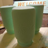 I let the paint dry overnight and this afternoon I put on the floral accents. The lighting sucks and it's more sparklier and mint green in person. My boys both said it was very pretty so I'll take...