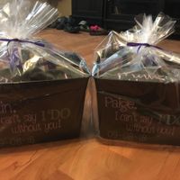 Completed my first DIY for the wedding! I know it's way earlier than tradition to ask 'my girls' but they're my sisters and I'm confident in my choices Each basket contains a personalized drink...