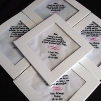 I decided to get handkerchiefs as a gift for my parents, in-laws, and my FH. I thought it would be a really sweet idea to give them something they could hold during the wedding. I ordered them from...