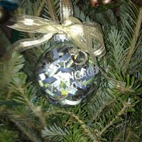 This was a popular year to get engaged for our family. So I decided to make my FH and I and also my Cousin and her FH christmas ornaments with our Save the Dates. Here is a pic of my cousin's...it...