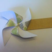 With a few of my wonderful ladies! We worked on pinwheel escort cards, pinwheels for the centerpieces, and the program fans, and got everything done! Here are pictures of the escort card and the fan...