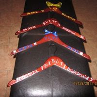 Here is a pic of my DIY hangers for my bridesmaid. I'm not finished I have to make 4 more and add the ribbon. I asked each BM'S whats their favorite color so I used those to make it. They have no...