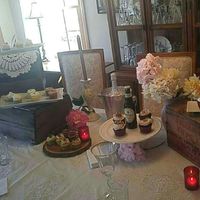 So we opted for a 2 tier cake to cut into and serve... and fun flavored mini cupcakes for our guests to eat on the spot or take some home! Here's a picture of what the table will look like (with more...
