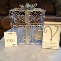 I ordered a gift box card holder, my monogram cake topper and my little sticker " I do " for my shoes.. I originally bought a birdcage gift card holder from hobby lobbies but I saw this one and liked...
