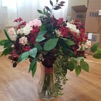 Feeling good about my flower choices and going with silk. Michael's had a sale on their fall floral which just happen to be my colors so I competed my floral arch as well as the flowers for the sides...