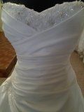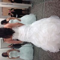 Here is a pic of my first dress fitting. This is showing the dress bussled, and if you look to the far left you can see where i'm having the neckline sweethearted. Whatchya think? Opinions please? I'm...