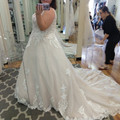 We still need to do alterations. Gotta work on the bust because it's not doing my ladies any favors, gotta hem the bottom, and take the waist in. I'm so in love. I didn't cry when I bought her...