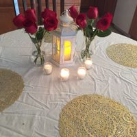 After weeks of searching through Pinterest for centerpiece ideas I finally made a decision. Here is a mock up of what they will look like. I am going to replace the doilies with gold charger plates....