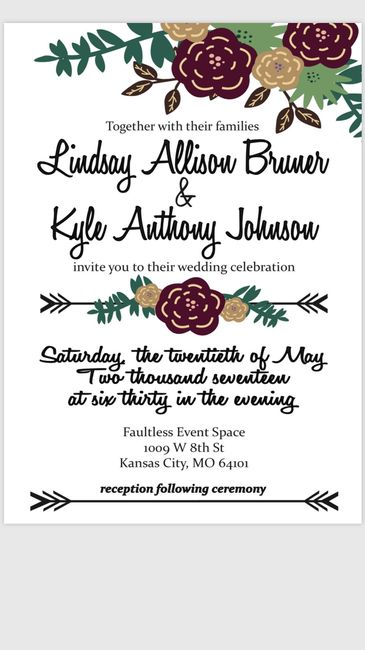 I was wondering if my invitations look ok before I get them on vistaprint as they are having a %50 off sale right now. Our wedding is from 12:30pm-5pm, on a Saturday and it is brunch style with everything in one location, a ballroom. I wanted to...