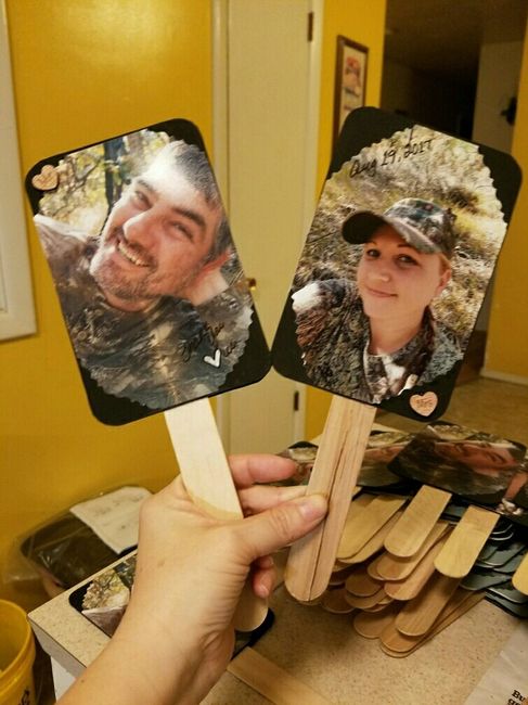 Getting married at the hottest time of the year, so making fans for all of our guests!! Very time consuming I didn't think it would take this long lol!! Here's a pic, do you ladies think they could use anything eles??