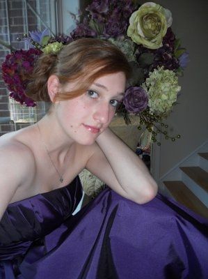 My sister is going to prom this weekend. Our mother usually does the make-up but since she'll be out of town it's my duty as the older sister to take care of her. Below is her in the dress, shiny eggplant. Any suggestions on eye shadow coloring? TIA....