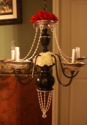 Well girls this is what I am going with, I hope evreyone likes it. The only thing I am thinking about changing is the silver around the candles.. I may paint them black as well. But I like this the best, We will be hanging it up in the gazebo ......