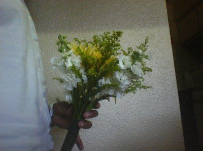 So I've never arranged flowers before...ever. We are having very simple/minimal flower arrangements for the wedding, so I'm thinking of just doing them myself. I bought a few yellow mums and some stock flowers and put these together. I like them, but...