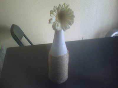 My FH and I are big beer fans and want to incorporate a lil of that into wedding. Here are the bottles (my fave beer) I spray painted and wrapped in twine. Going to have 2 or 3 stems in each bottle
