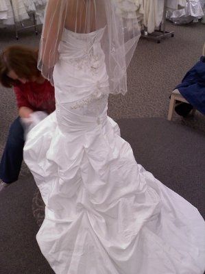 Here is my dress. I can't choose my jewelry. I'm only wearing earrings and a necklace. Plus hoping to find a cute clip to put in my hair, since I will not wear a veil or tiara. I'm debating rhinestones or pearls. I'm not a big pearl kinda gal. But I...