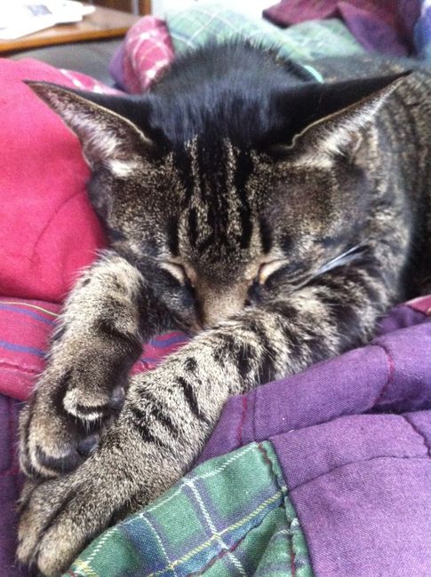 My clyde is such a stinker!! First he decides to wake me up at 5 30 because he needed to go potty. Then after he goes potty and we lay back down he decides that he's not tired anymore and doesn't wanna go back to sleep so that of course means mommy...