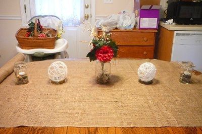 I wasn't completely happy with my last centerpiece idea, so since I have the time I did some re thinking them, and came up with this! Ignore the mess in the background. And also ignore any black strings you see from the string balls as well, that's...