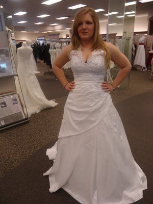I went w/ my mom, and the other dress she wasnt so pleased with. Than we started looking. She picked this dress out but my sister said I wouldnt like it... I ended up picking this dress out. My mom put the color of my bridesmaids dresses next to me...