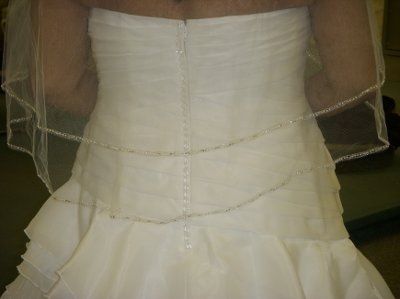 Does any happen to have there veil they can take a pic of. I am tryin to tell my grandmother what I want but she is in California. What I want is a scalloped edge 2 tier.. Maybe some lace and pearls and the edge. Or just pearls and some sparkley...