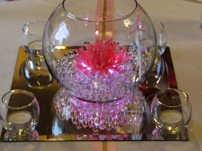 so these are two idea's i have for centerpieces! I'm using submersible lights. I'm wondering if any has used them and if so did you find a place where you can get a lot for cheap? I got a pack of 4 for $7 and i will be using quite a bit and don't...