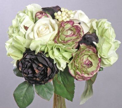 I want to make my bouquets for the girls & myself. Any idea of what flowers would make a pretty purple & greem bouquet. I want the purple to be a medium purple, nothing too dark.