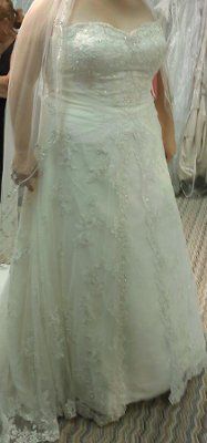Show me your dress and then the dress on the model! I really never like the dresses on models! I haven't seen one model that looks better than the bride actually wearing it! Here is mine! Sorry for the crappy cell phone quality!